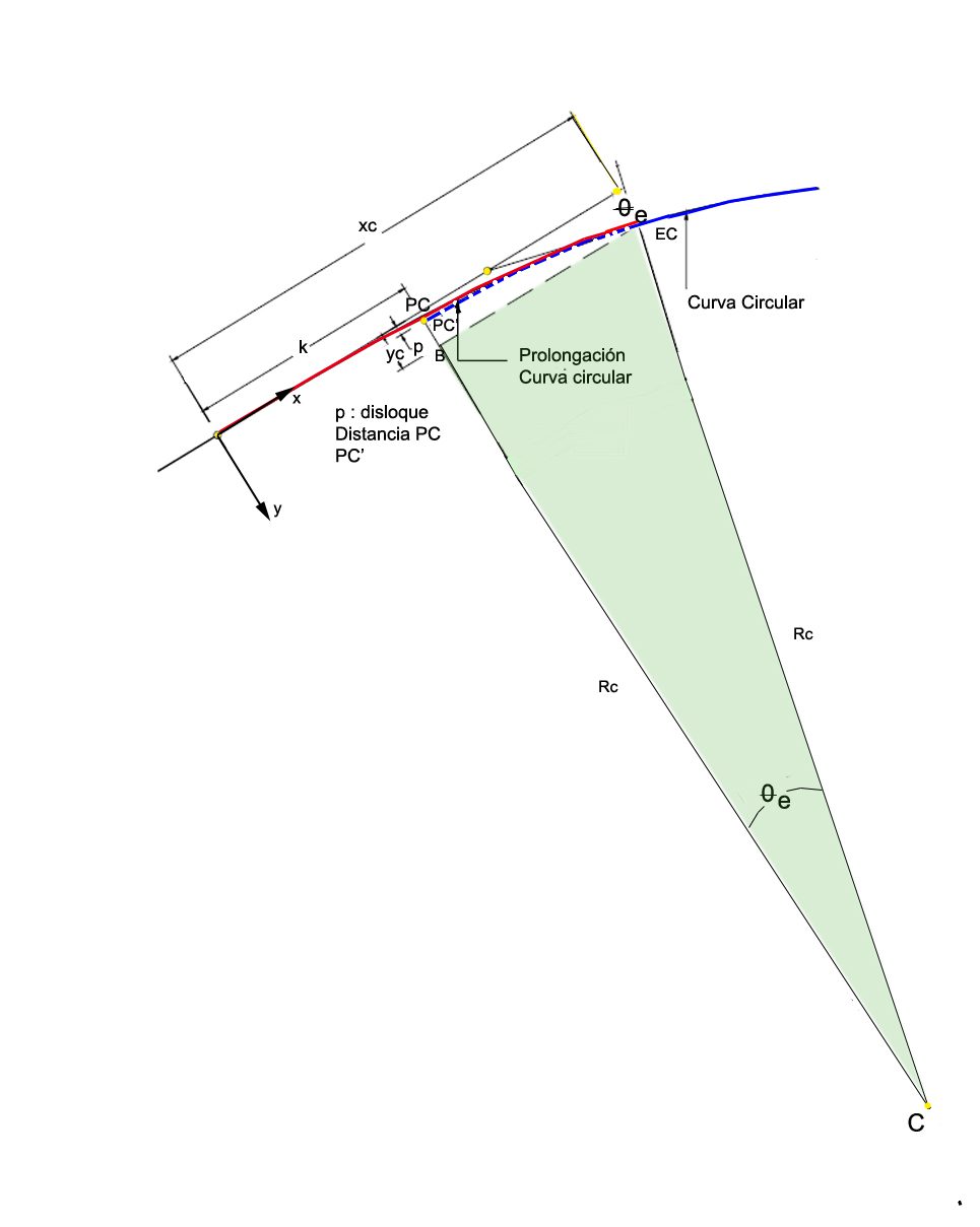 Aquí, A es un parámetro de escala que define la «rigidez» de la curva, mientras que sss es la distancia a lo largo de la curva desde el origen. Esta propiedad de la clotoide permite una transición suave y controlada de una recta a una curva circular, lo que reduce los efectos negativos asociados con cambios bruscos en la curvatura.