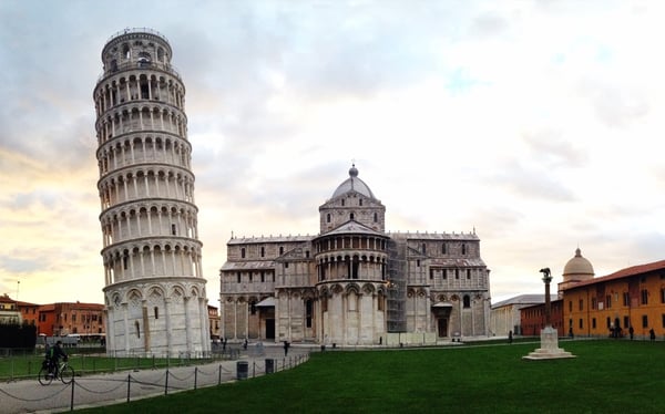 La Torre Inclinada de Pisa, en Italia, es el campanario de la catedral de Pisa y presenta una inclinación de 3,97 grados. La inclinación de esta torre comenzó al inicio de su construcción.