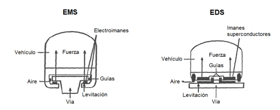 Ilustración 1: Diferencias entre EMS y EDS. Adaptado del artículo de Rose, Petersen y Leung: Implementation of cargo MagLev in the United States