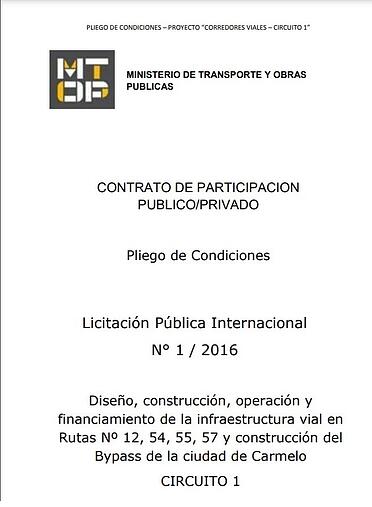 Trabajo Fin de Master: Informe Ejecutivo sobre la Licitación No. 1/2016 del Proyecto Público Privado de Carreteras “Diseño, construcción, operación y financiamiento de la infraestructura vial en Rutas Nº 12, 54, 55, 57 y construcción del Bypass de la ciudad de Carmelo CIRCUITO 1 en Uruguay”.