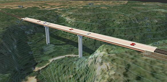 En primer lugar, se realizó un pre-diseño de la carretera y el diseño del puente mediante el software Infraworks (v.2021). Este programa está orientado al campo de la pre-ingeniería y se focaliza en realizar una planificación previa del encaje y en el análisis del impacto de las infraestructuras sobre el terreno. Su utilidad se centra en proporcionar información para la toma de decisiones en las etapas tempranas de diseño. Uno de los puntos negativos de este software es que la información que se obtiene no es válida para generar proyectos, aunque permite realizar importantes estimaciones para determinar los movimientos de tierras, y su encaje en el terreno.