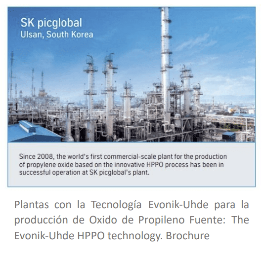 Oxide) Evonik-Uhde para la producción de Óxido de Propileno a partir de Propileno y Peróxido de Hidrogeno.