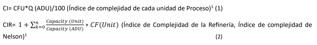 - La intensidad de capital y el nivel de complejidad y especialización de las unidades aguas abajo de la unidad de destilación atmosférica en una refinería define su índice de complejidad. En el caso de las refinerías estudiadas, los índices están en el rango 5<CI<14 que corresponde a refinerías complejas.