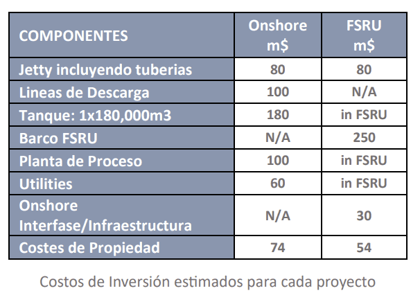 y operativos y de cómo se optimizan las operaciones de la refinería. - Dado los menores costos, el proyecto de GNL más económico para la empresa será la unidad de regasificación flotante FSRU.