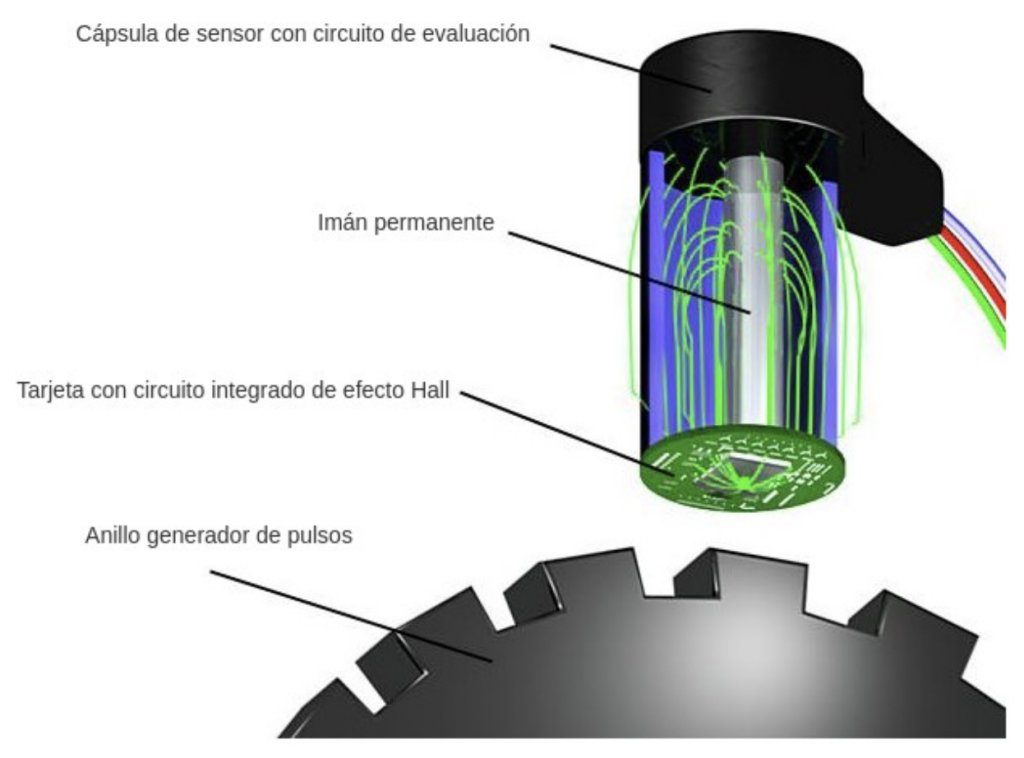 Funcionamiento de un tipo de sensor de velocidad efecto Hall, utilizado en la industria automotriz. Mecanicaparatodos.blog
